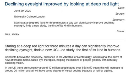 对于患有白内障的老年人而言,您不仅需要适宜的亮度,更需要能养护眼睛的光。在众多光谱波段中,670NIR红光备受关注。研究显示,670NIR红光能够穿透眼部组织,直达视网膜,修复受损视网膜细胞的同时,还能促进眼部血液循环,有助于缓解用眼疲劳。这为已面临“老花眼”“白内障”等老年视力问题的人而言,提供了一种日常养护的新思路。